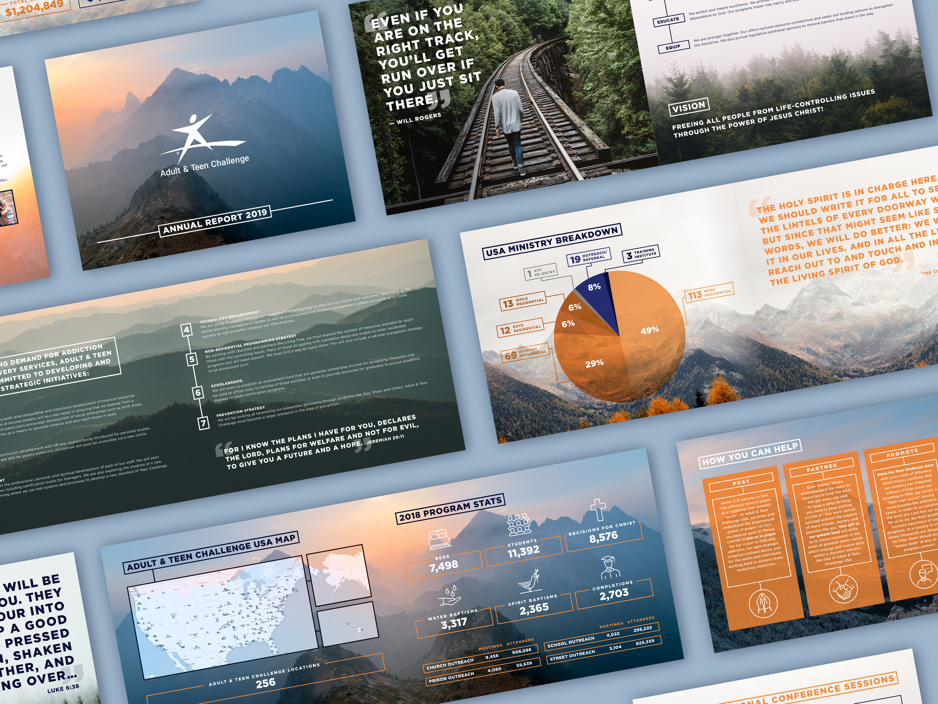 Teen Challenge needed their first organization-wide annual report in over 10 years. They gave us freedom to explore the design, allowing us to use this piece to establish a brand look for use on all future pieces.